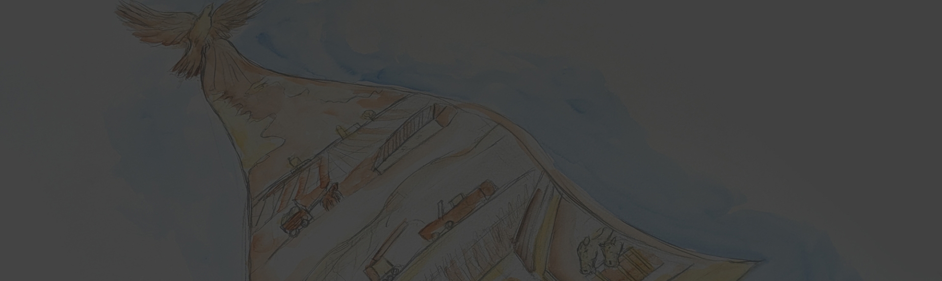 This blanket is being lifted by a dove representing peace to reveal a prone figure on soil.